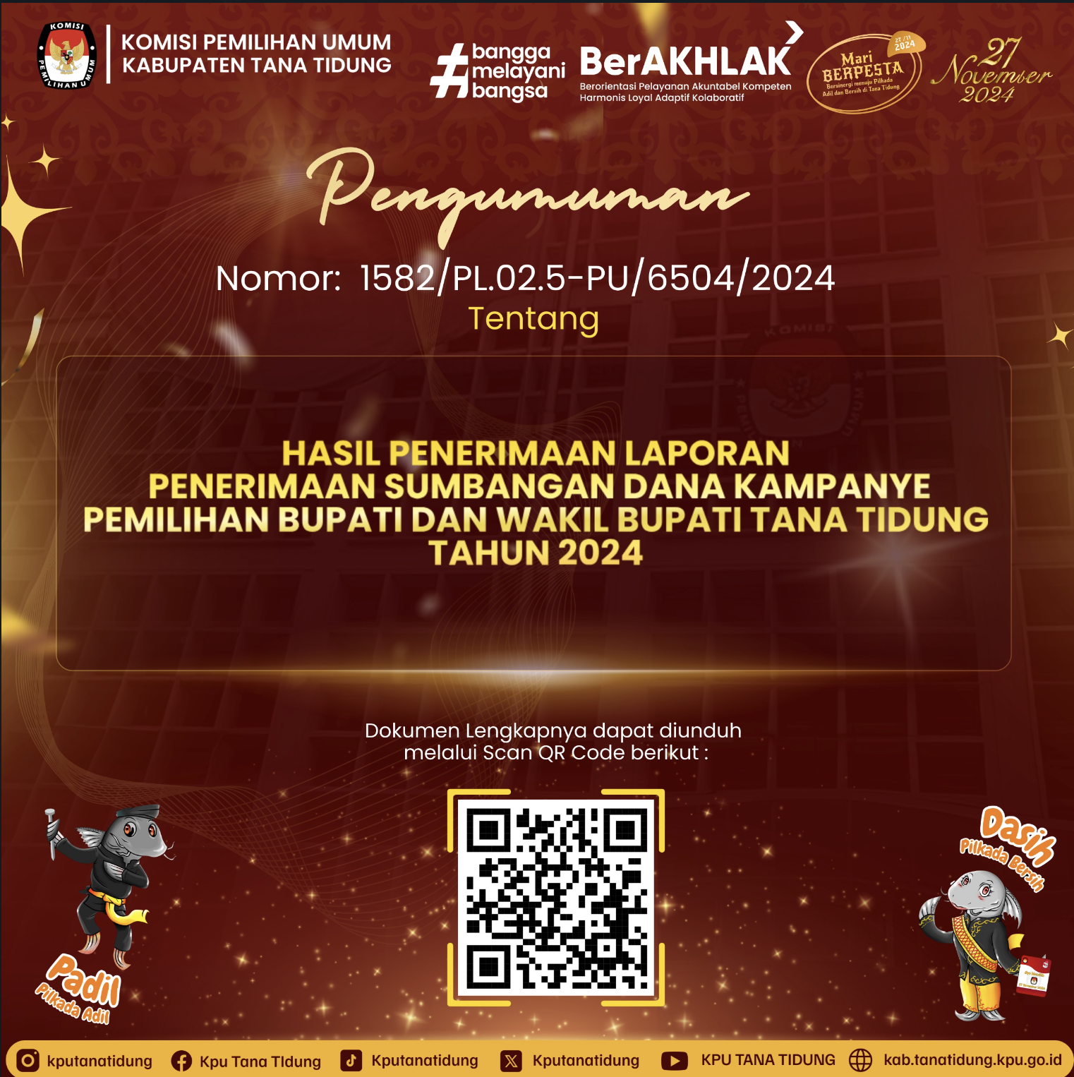 Hasil Penerimaan Laporan Penerimaan Sumbangan Dana Kampanye Pemelihan Bupati dan Wakil Bupati Tana Tidung Tahun 2024