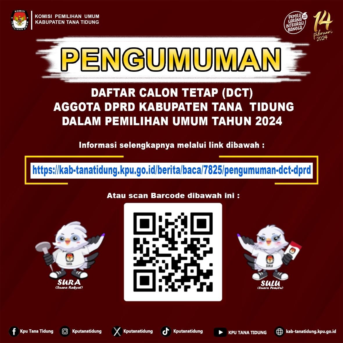 PENGUMUMAN DCT DPRD Sabtu, 04 November 2023 07:00 715 KLIK UNDUH DAFTAR CALON TETAP ANGGOTA DPRD KABUPATEN TANA TIDUNG DALAM PEMILIHAN UMUM TAHUN 2024 Baca Selengkapnya